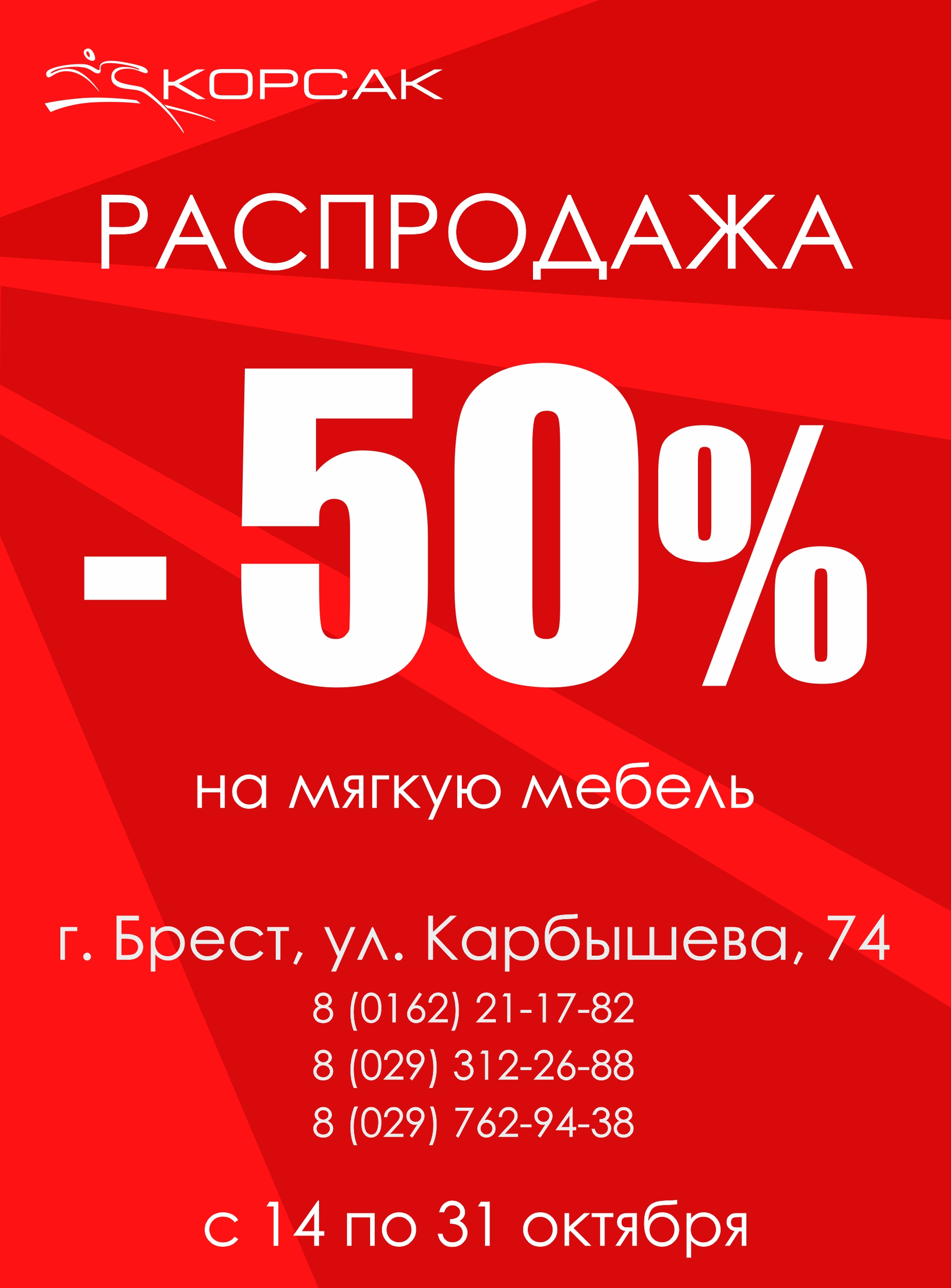 Ликвидация магазина мебели! Успей купить мягкую мебель со скидкой! Приглашаем за покупками: г. Гродно, ул. Богуцкого, 5 8 (044) 783-40-15, 8 (033) 654-08-14 Режим работы...