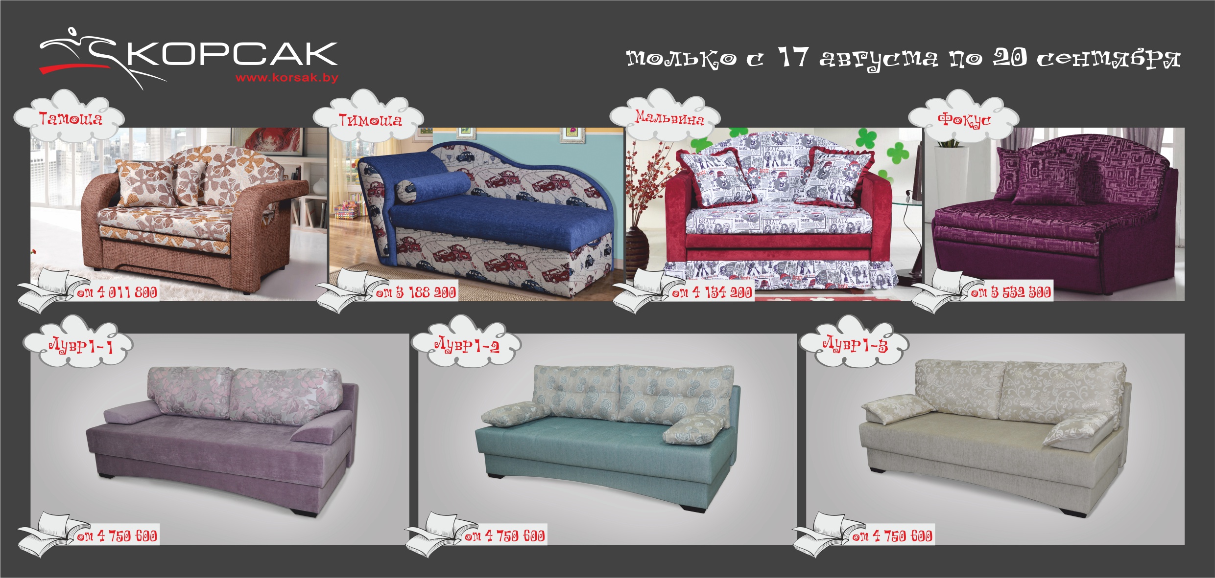 В ПЕРИОД С 17 АВГУСТА ПО 20 СЕНТЯБРЯ ЦЕНЫ НА ДИВАН-КРОВАТЬ «ЛУВР-1» (ВАРИАНТЫ 1, 2, 3), «МАЛЬВИНА», «ТАТОША», «ФОКУС» И «ТИМОША» СНИЖЕНЫ.