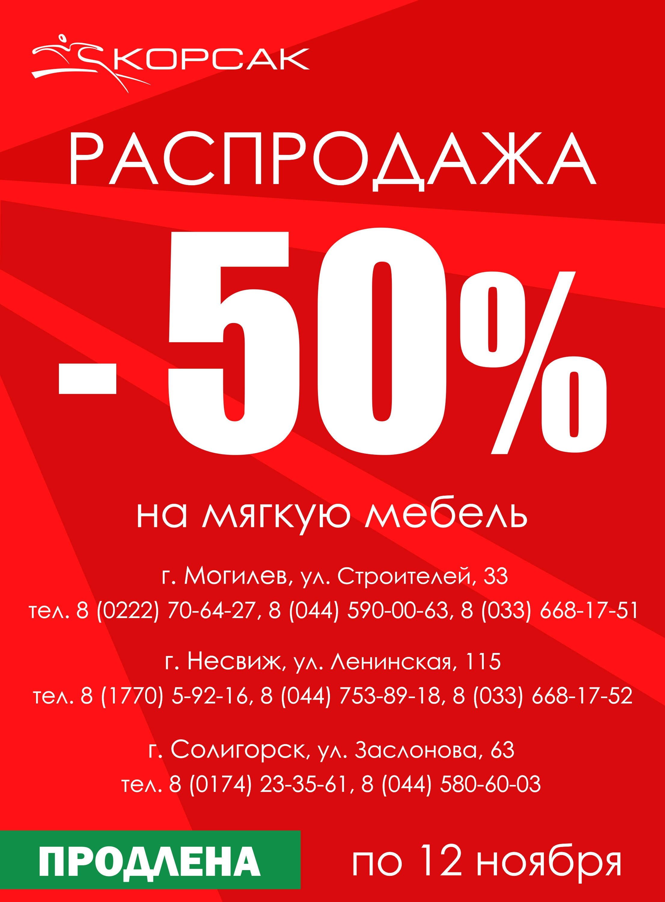 Распродажа "-50%"продлена по 12 ноября!